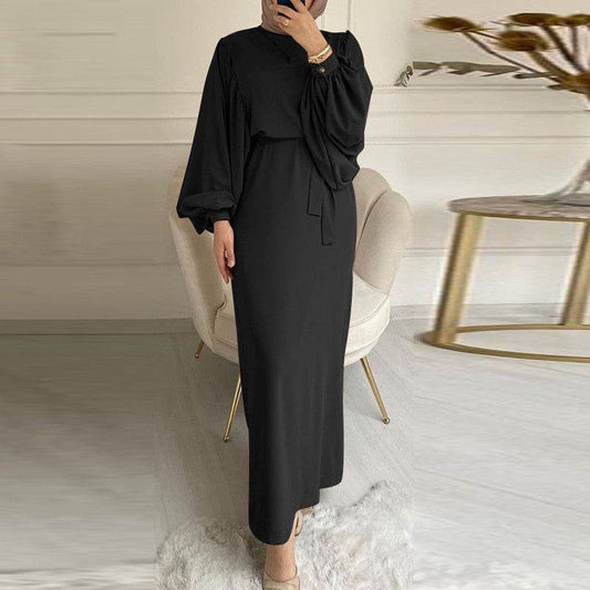 Muslim Hui Pure Color Robe - Elegant Ankle Dress for Cultural Wear